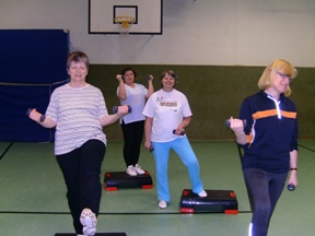 Am Dienstagabend stehen unter der Leitung von Claudia Ulitzka verschiedene Aktivitäten auf dem Plan: Ausdauertraining in Verbindung mit dem Steppbrett, Beckenbodengymnastik, Rückenschule, Muskelentspannung, Aerostepp, Zirkeltraining, Pezziball-Übungen sind hier die wesentlichen Punkte